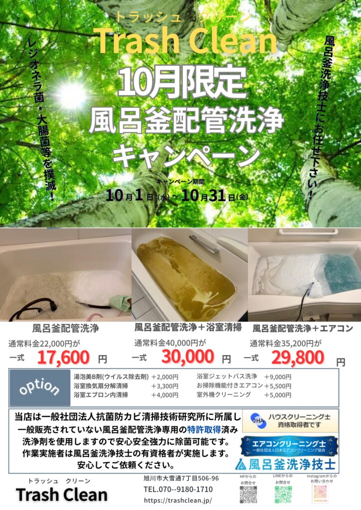 10月限定で風呂釜配管洗浄のキャンペーンを実施します。